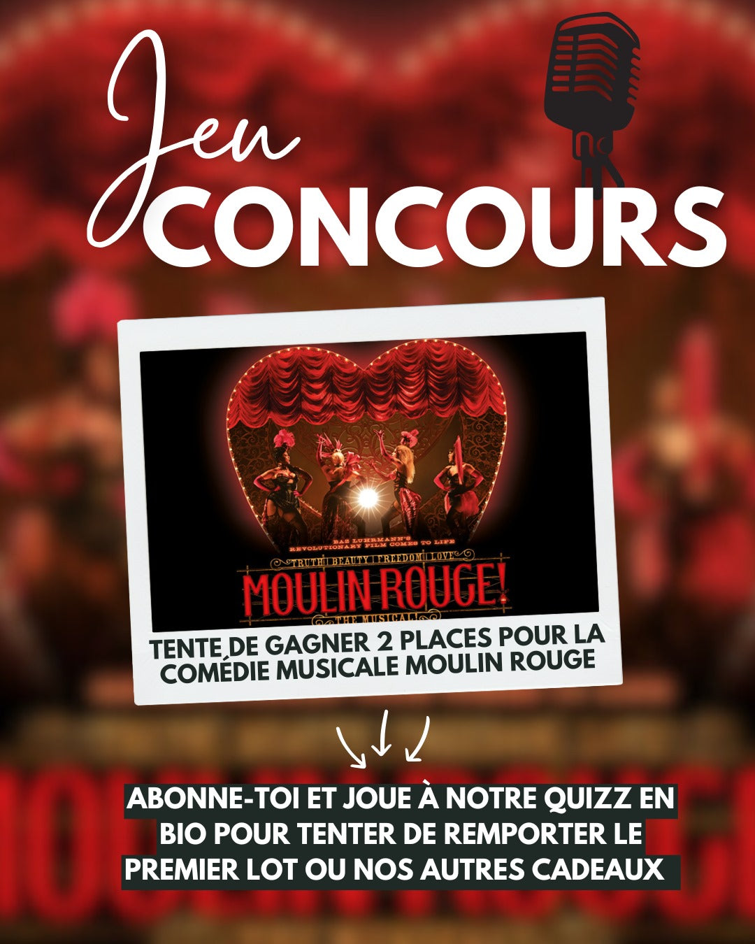 Tu seras tiré•e au sort pour gagner 2 billets Catégorie 1 pour voir le spectacle Moulin Rouge à Zürich le samedi 28 février 🤩